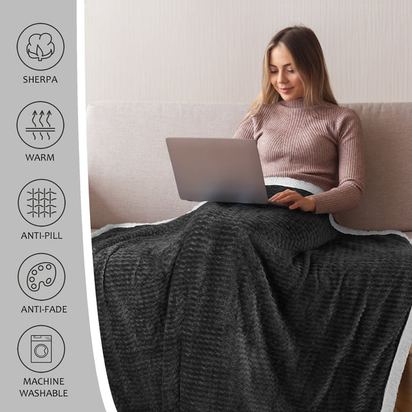 Tirrinia Sherpa throw blanket is made of 100% premium micro plush polyester for a soft touch, lightweight, warm and cozy, and great for snuggling under on movie night.