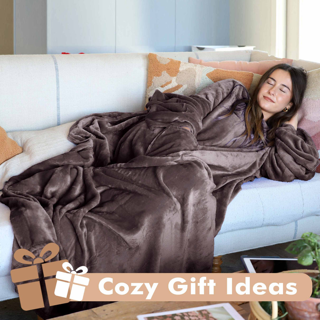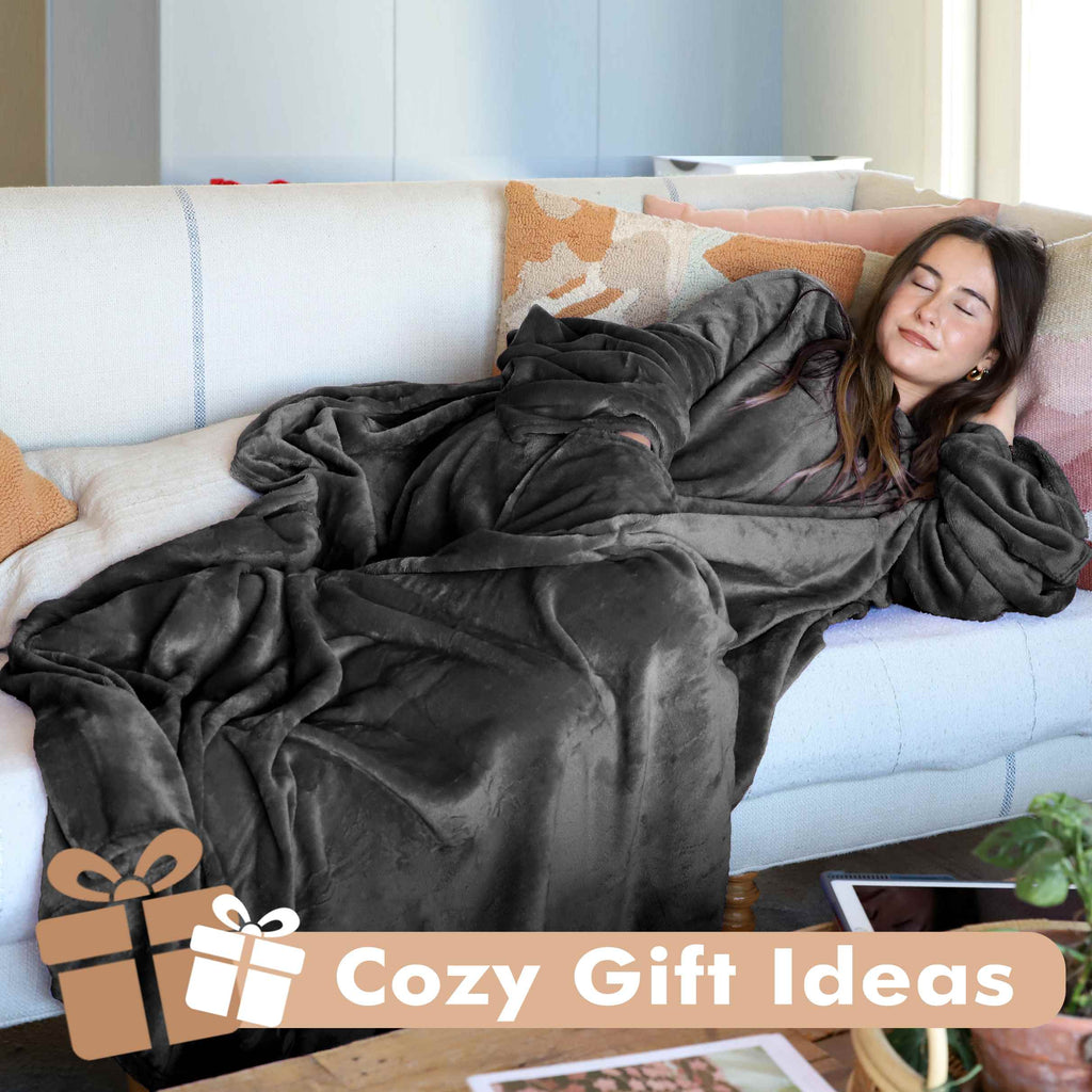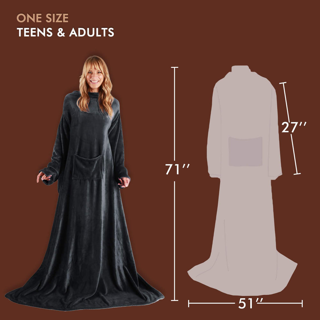 Tirrinia wearable blanket is a thin, stretchy fleece designed to keep you warm and cozy at home or on the go. An oversized wearable blanket adult is a new type of clothing that looks like your favorite expensive stuffed animal! This soft, comfy, cozy blanket has sleeves so you can wear it everywhere - around the house, outside in the cold, or even at work.