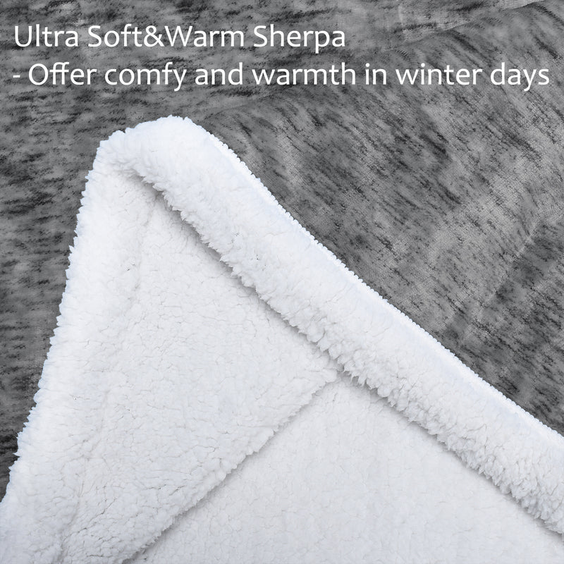 Tirrinia Sherpa throw blanket snow is made of 100% premium micro plush polyester for a soft touch, exquisite seaming and hemming workmanship ensure the plush throw does not shed, fade or wrinkle, and it is suitable for staying durable all year long. The front side of the throw has a soft micro fleece in a snow theme which provides a richer look and a fantastic sheen while the back has a super soft Sherpa fleece feel to it.