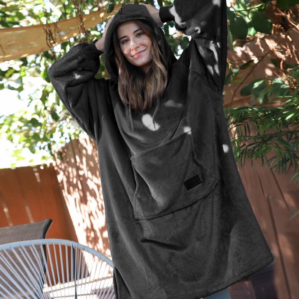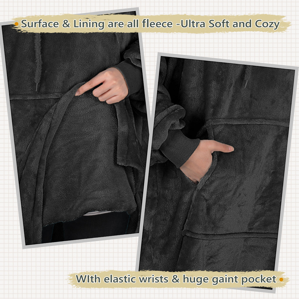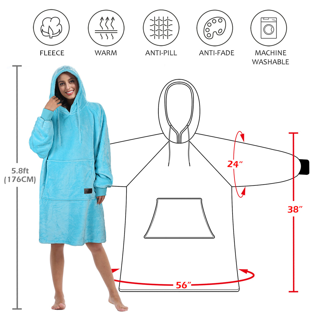 True to its name, this fleece oversized hoodie blanket is your go-to layer for all seasons. This standard hoodie with long sleeves covers you completely. It keeps you surprisingly warm and cozy while lounging at home, for morning coffee outside, or at a sporting event, you can wear it in the office, or for any camping, concert, or outdoor activities.