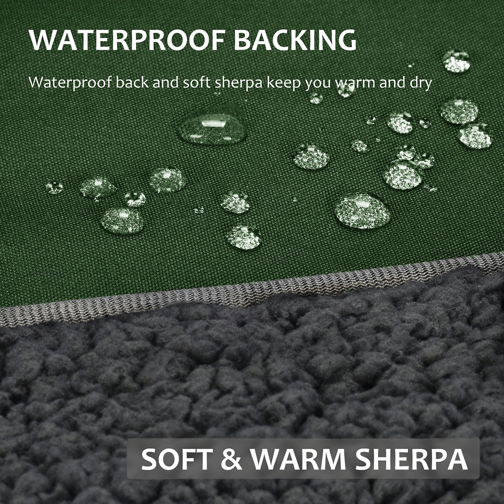 Tirrinia Reversible Waterproof Blanket will keep you and your pets cozy, warm and dry, regardless of the weather conditions. 3 Layers system, Soft Sherpa Fleece, Waterproof & windproof membrane, Ultra Durable Fabric. Our fully-tested blanket stays 100% dry whether protecting you and your pets from a heavy downpour or laying on a puddle.
