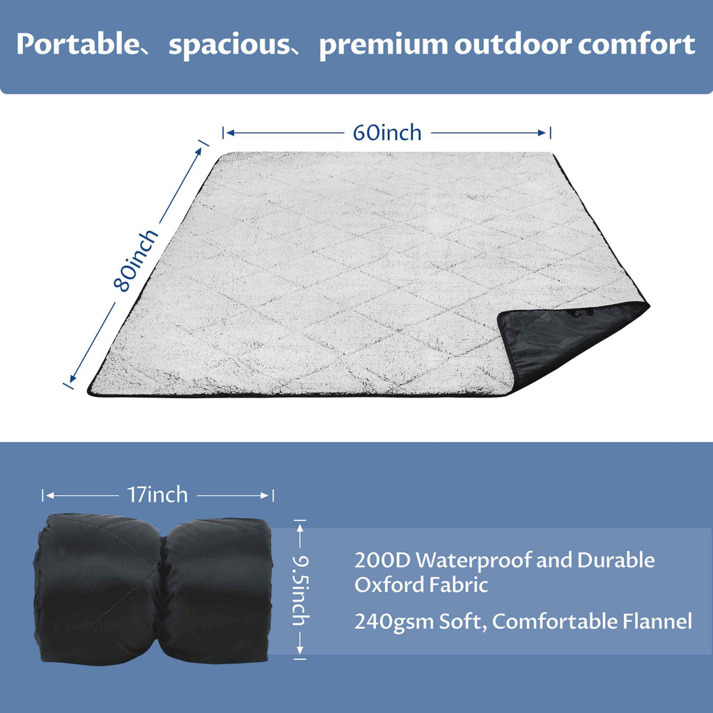 Ultimate Comfort & Weather Defense – Experience luxury in the outdoors with our upgraded 200D Oxford fabric, designed to be extra durable and water-resistant. Paired with a 240gsm soft, breathable Sherpa lining, this grey throw blanket shields you from dampness while providing unmatched coziness. Please note: the plush side isn't water-resistant.