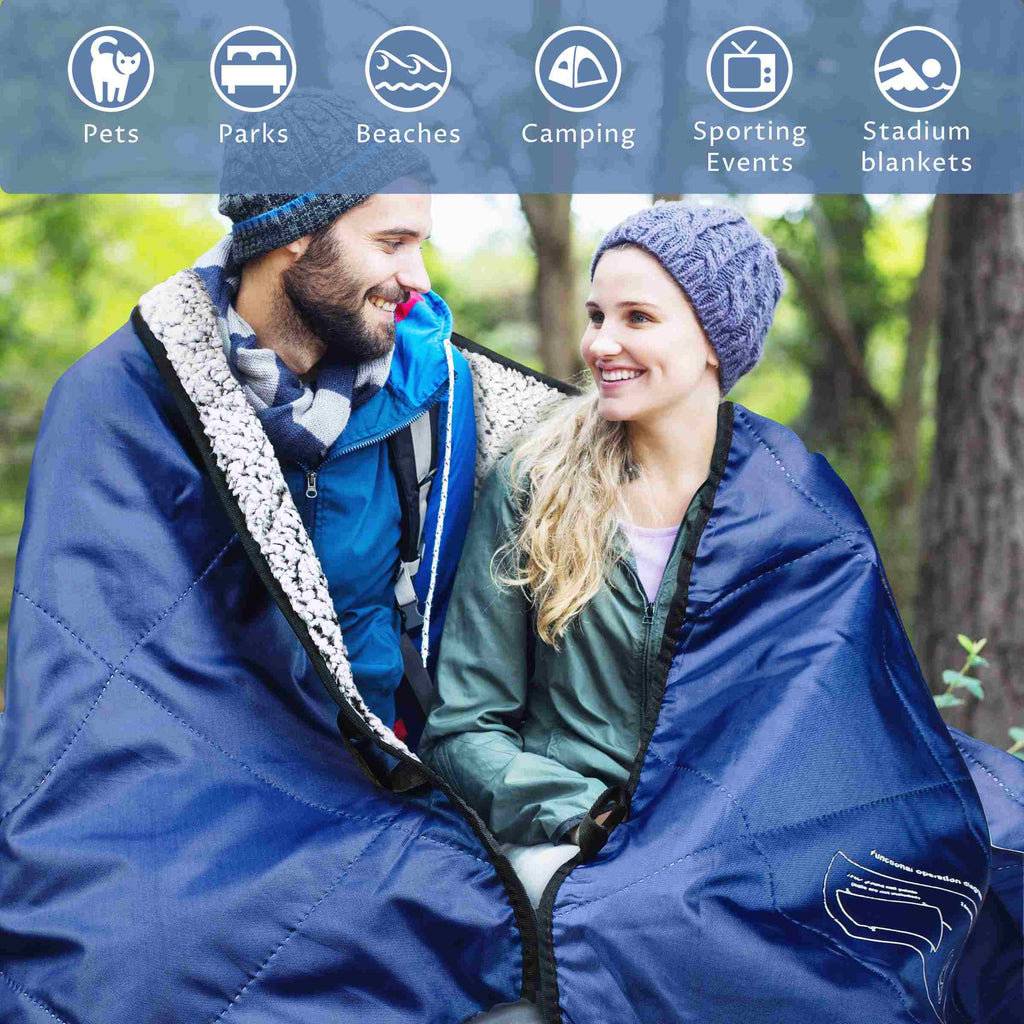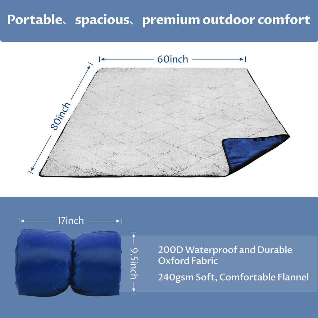 Crafted with a combination of insulated waterproof Oxford and plush Sherpa fleece, this blanket provides versatile comfort and protection against the elements. The water-resistant backing and wind-proof design ensure durability and reliability, while the soft Sherpa fleece offers an extra layer of warmth and coziness.