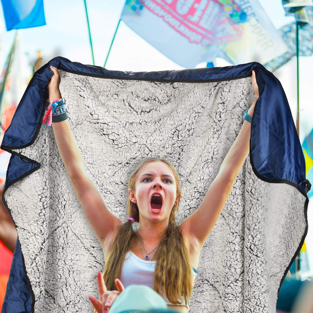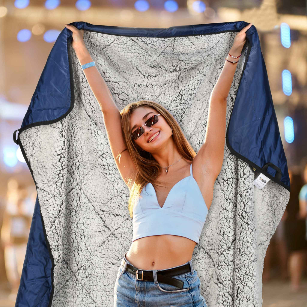 All-Weather Companion – Embrace the outdoors without compromise! Perfect for a range of activities, from camping under the stars to cheering at chilly soccer games, our triple-layered blanket stands up to wind and rain, ensuring you stay warm and dry. It's an indispensable accessory for stadiums, parks, picnics, concerts, and even as a cozy cover on the couch.