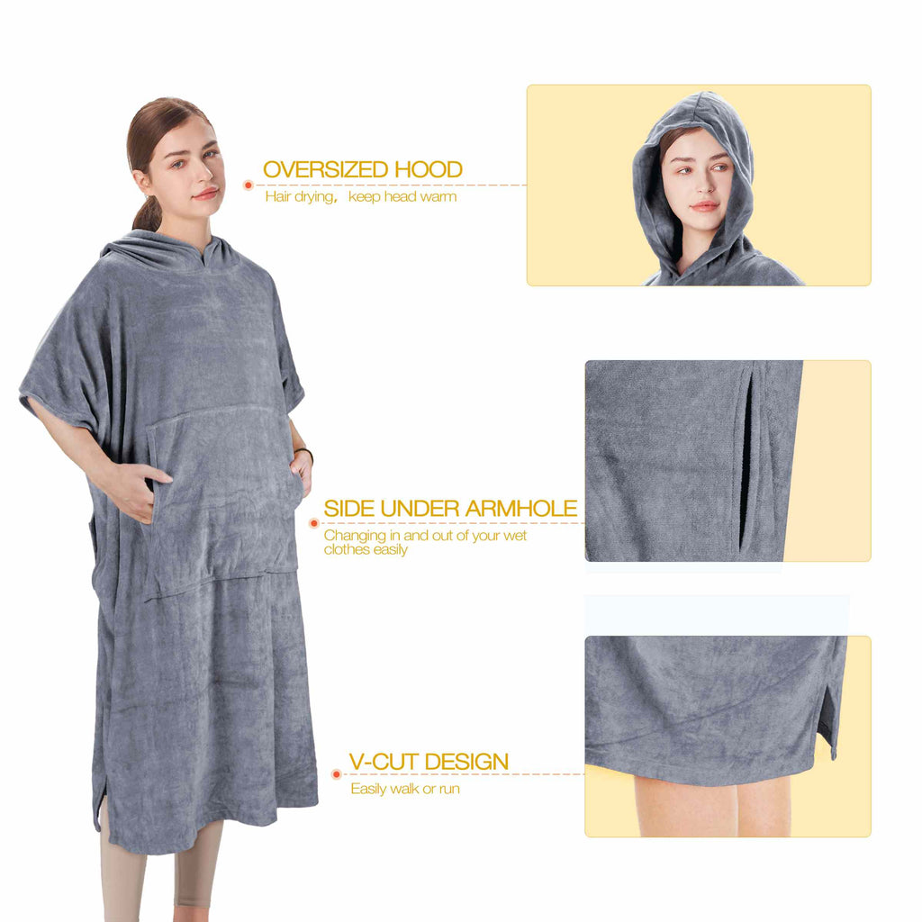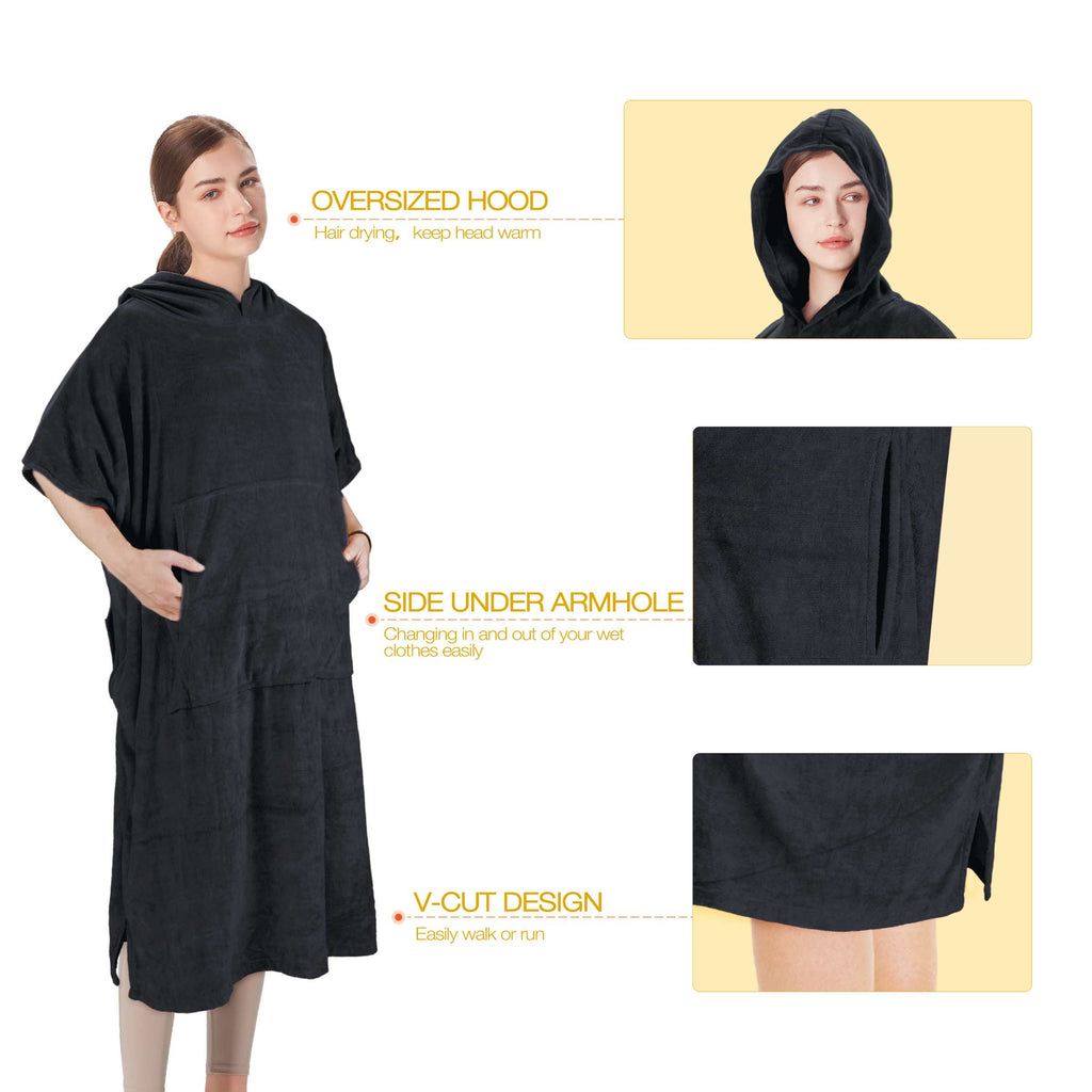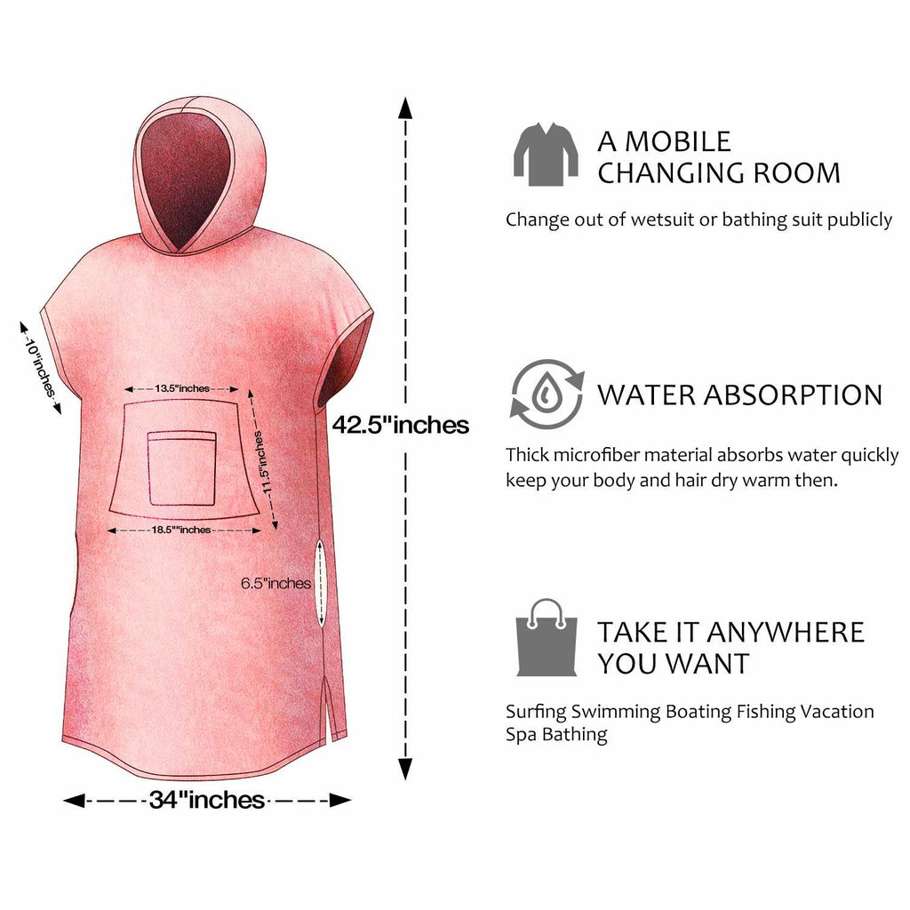 The loose, roomy fit allows the wearer to move around comfortably during diaper changes. It fits adults of different sizes and is suitable for both men and women. It can also be used indoors as an after-bath towel to keep warm and wick away moisture. It also allows you to walk around the beach as you please. Suitable for beach, pool, indoor, outdoor, surfing, etc. Can also be used as a gift for surfers and swimmers.