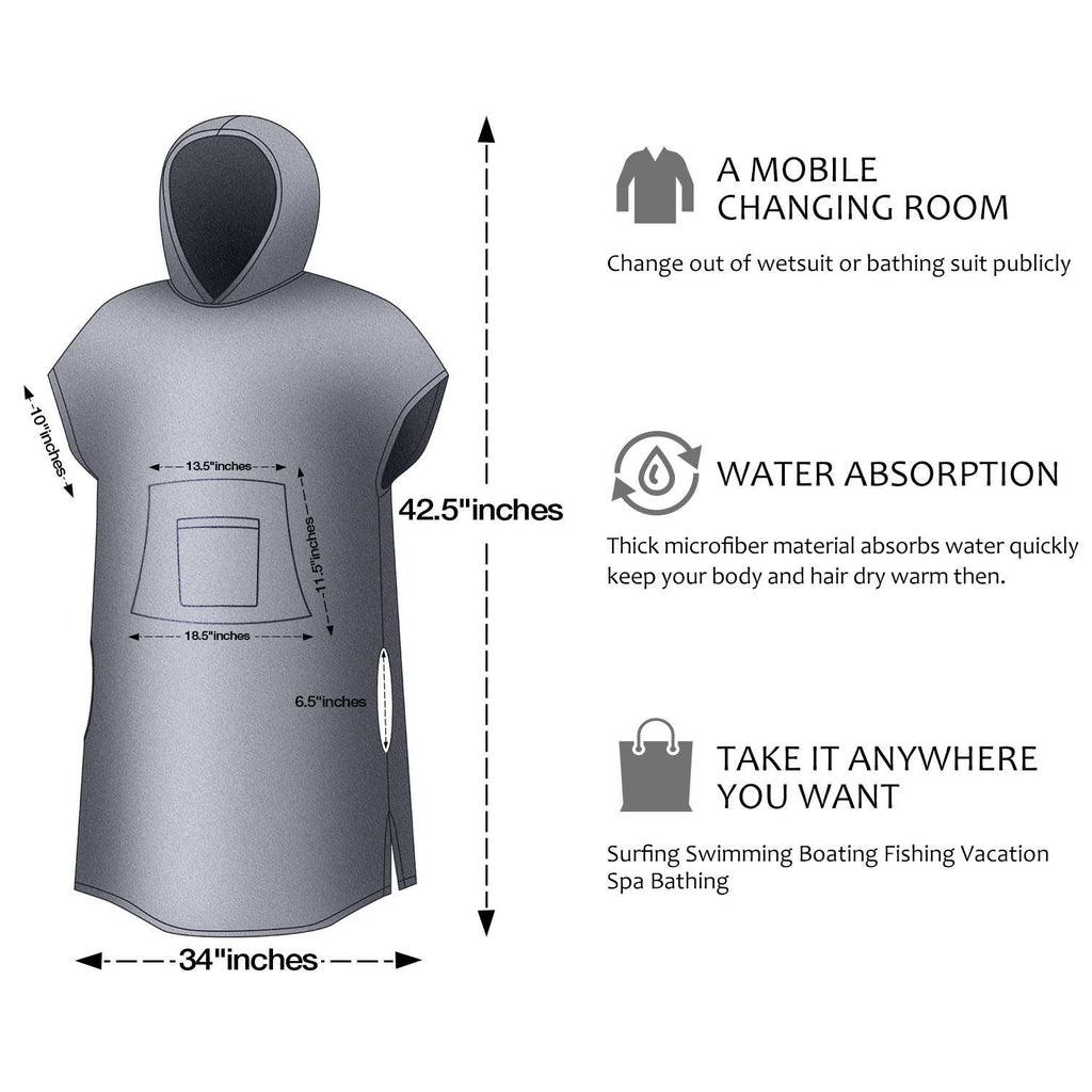 - One Size Fits All: Anyone can use this surf poncho, Men or women