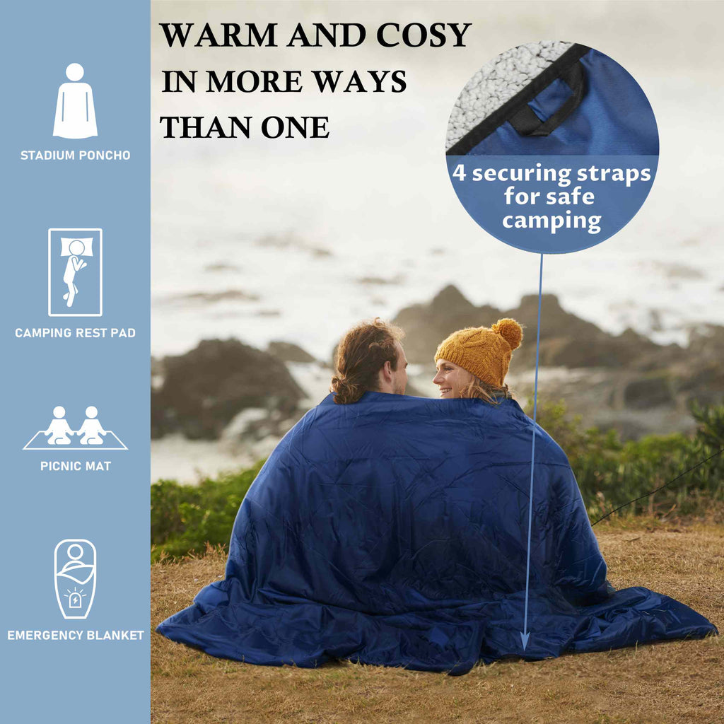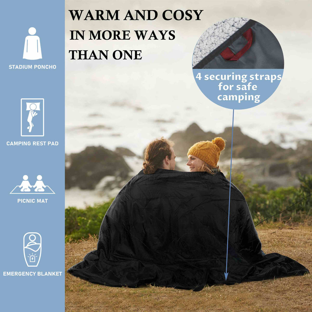 When it's windy, our blanket stands strong. Its large 60" x 80" size is ample enough to cozy up two adults, while four slip-resistant windproof rings ensure that it stays put, preventing shoulder slippage and keeping the blanket securely in place. Whether you're at a picnic, a football game, or a rainy concert, this blanket will be your steadfast ally.