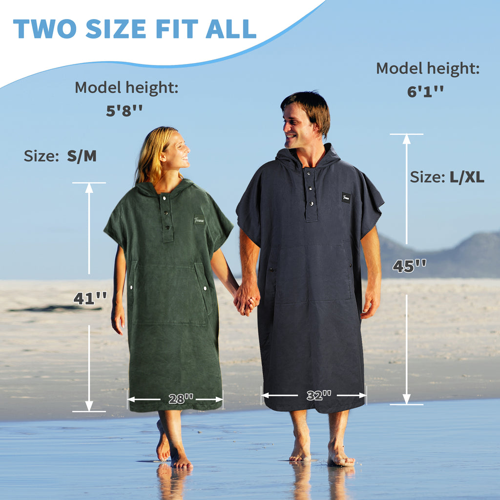 Our surf poncho boasts a stylish design, allowing you to make a fashion statement on the beach while staying practical. Available in M and L, it comfortably fits most adults and teens, making it a perfect gifting option.