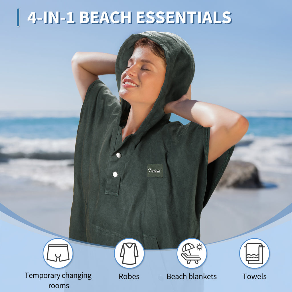 Tirrinia Surf Poncho Changing Towel Swim Robe with Hood, Portable Dressing Room, Stylish & Multi-Functional for Surfing Adult