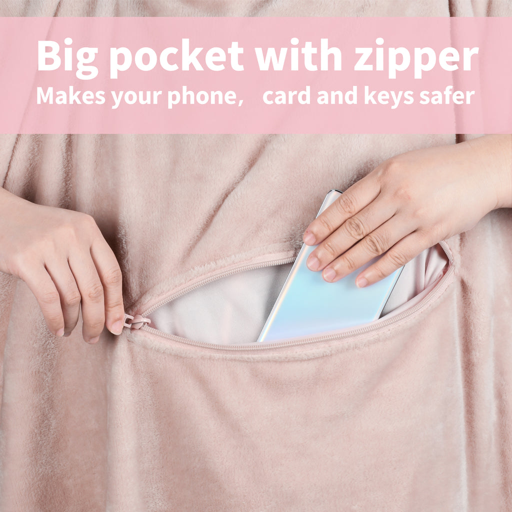 Compact and Packable: Designed for convenience, Front pocket with zipper for small items like smartphone, and this blanket can be easily folded and packed into a travel bag, backpack, or suitcase, ensuring that you stay cozy wherever you go.