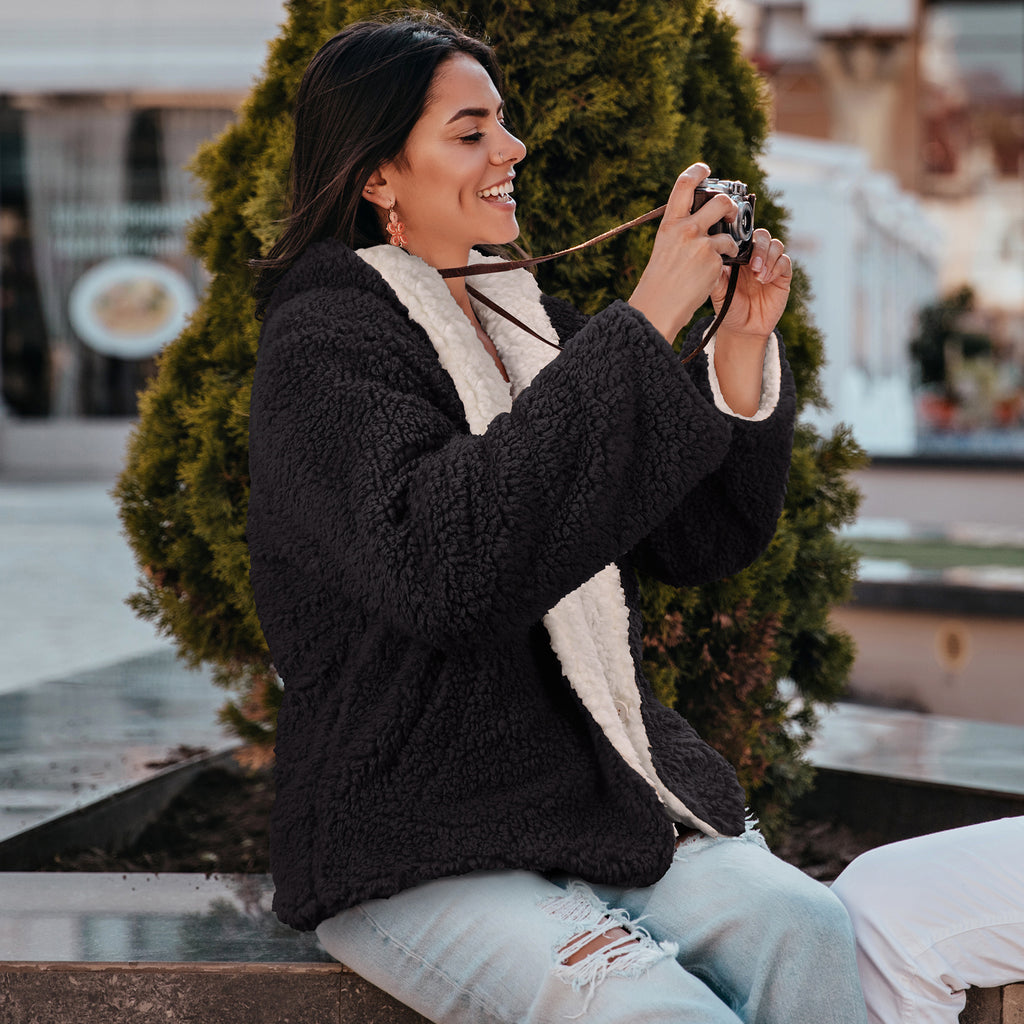 Durable and warm, the Tirrinia furry Jacket is made of high-quality brushed cotton material. The comfortable faux shearling lining will keep you warm in cold winter.