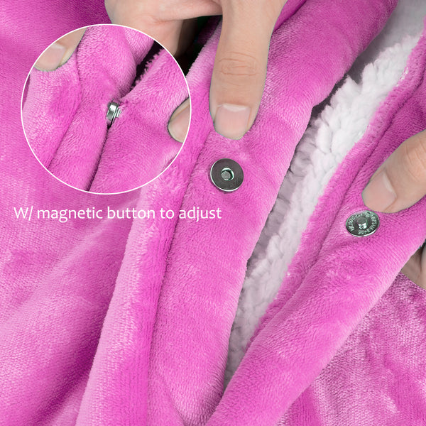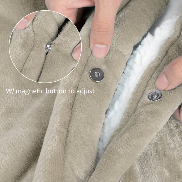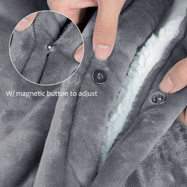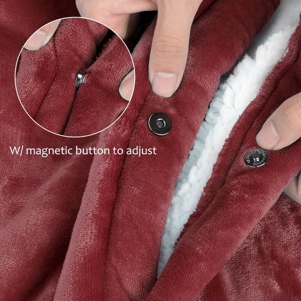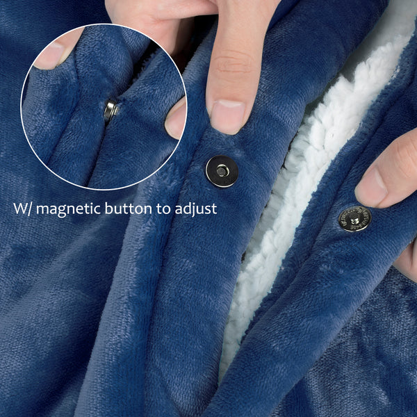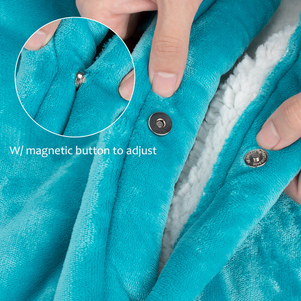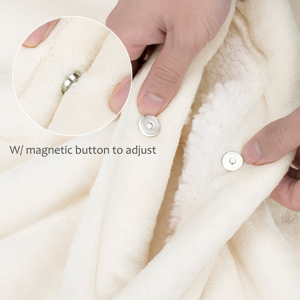 Our wearable blanket poncho allows you to feel warm and better freedom of movement at the same time. The thick lambswool lining gives you softness and comfort, and the magnetic fastening design at the collar protects your neck. Wearing this blanket, you can be fearless of the winter cold.
