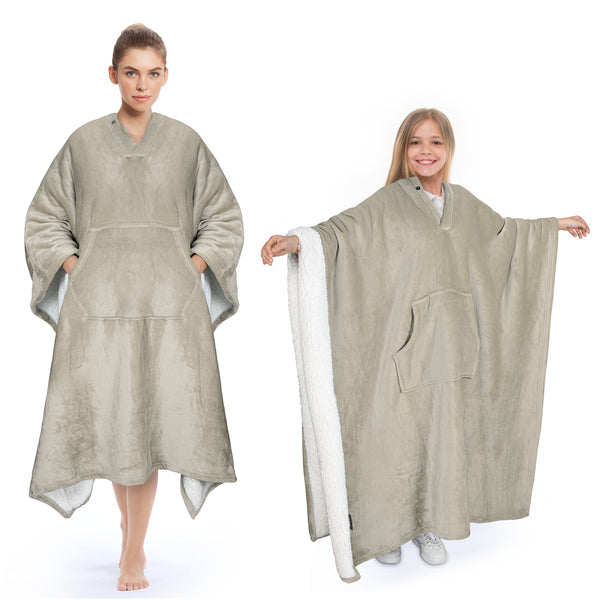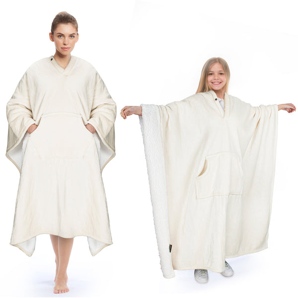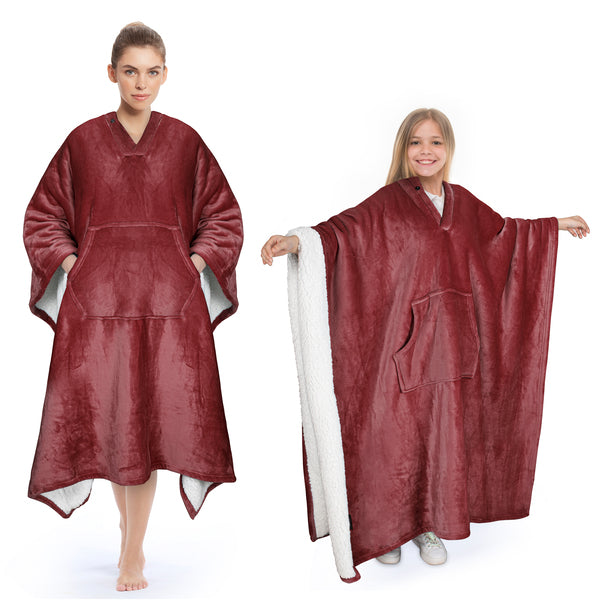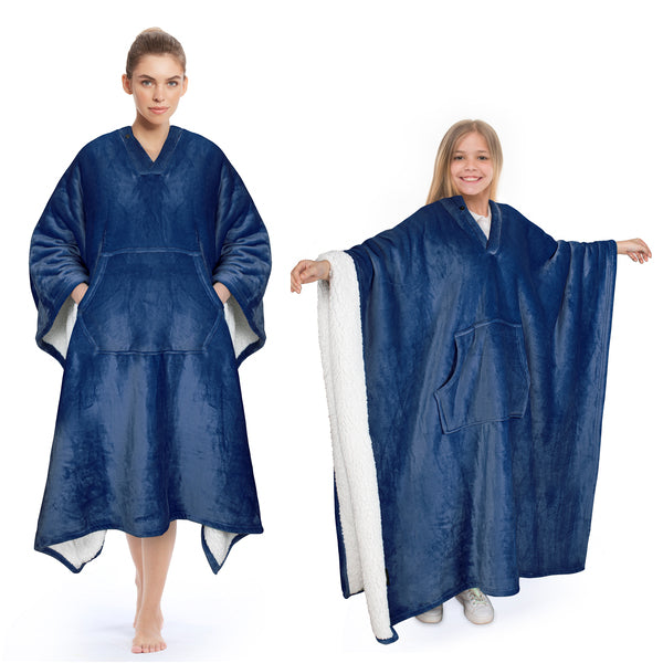 One size fits most adults and teens. Also, this wearable blanket poncho is a wonderful gift to your family and friend on Christmas and Thanksgiving.