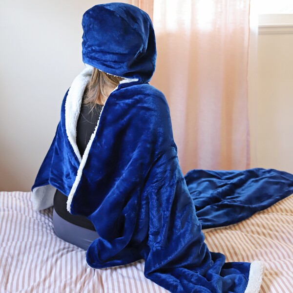 Tirrinia sherpa wearable blanket with a hood and sleeves, our wearable blanket gives you all-around warmth! Made of 100% premium microfiber polyester. Outstanding softness, ultra-thermal sherpa inside, the soft wearable blanket keeps you soft and cozy from head to toe during winter.