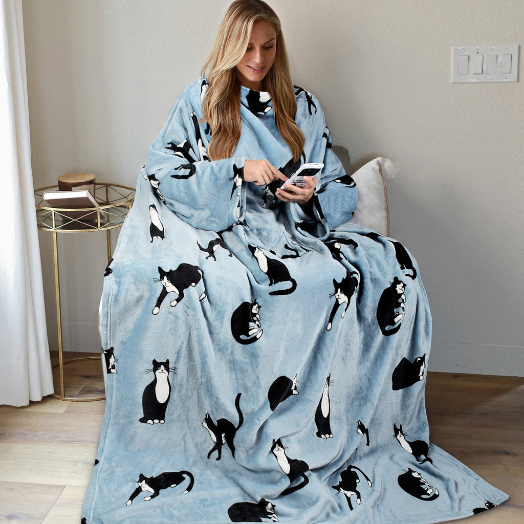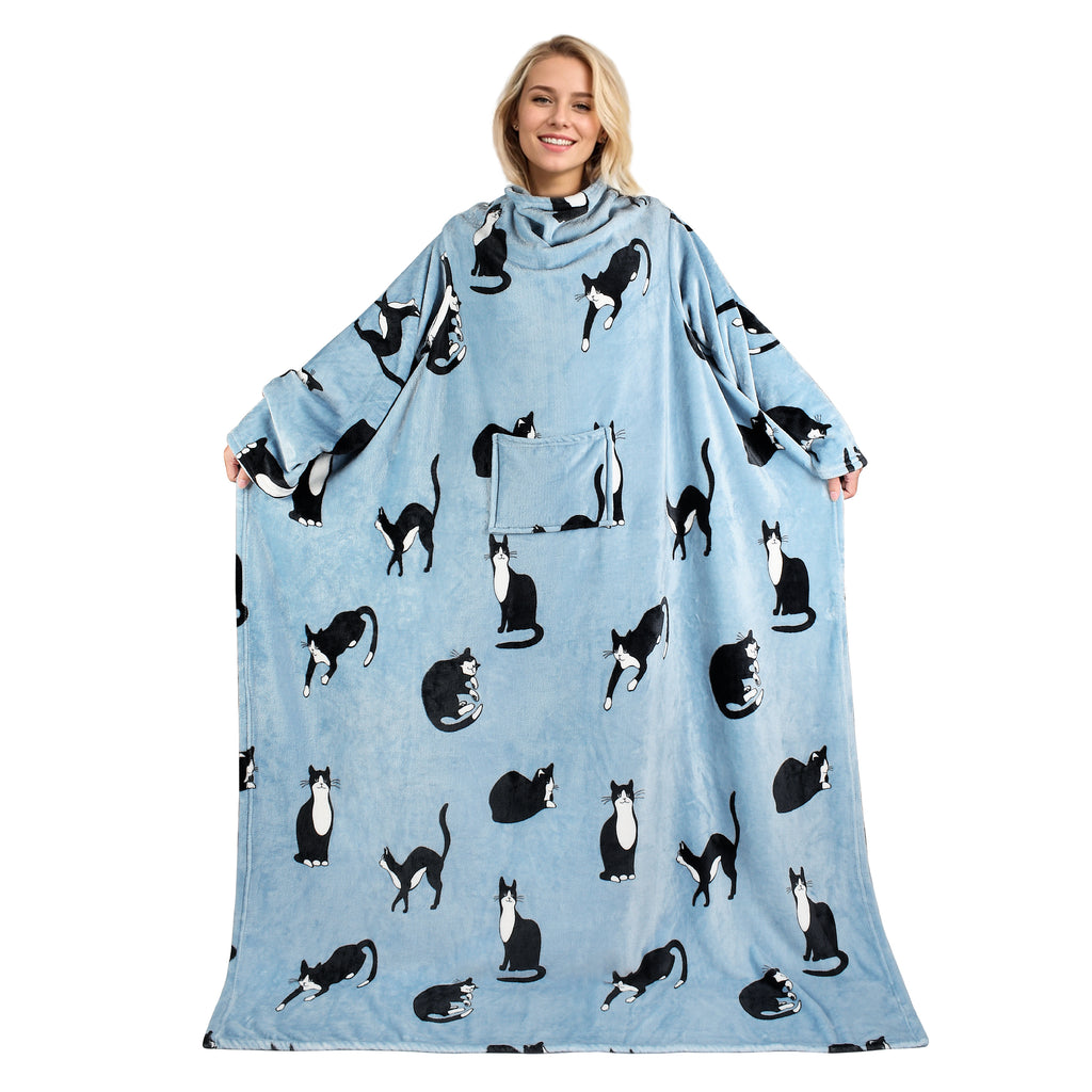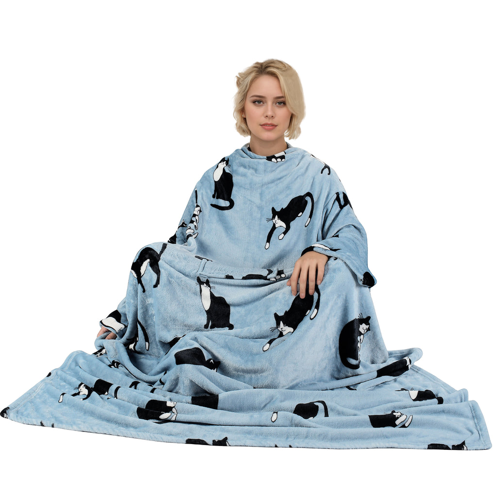 Measuring 73" x 51", this wearable blanket is designed to fit most adults comfortably, providing ample coverage and freedom of movement.