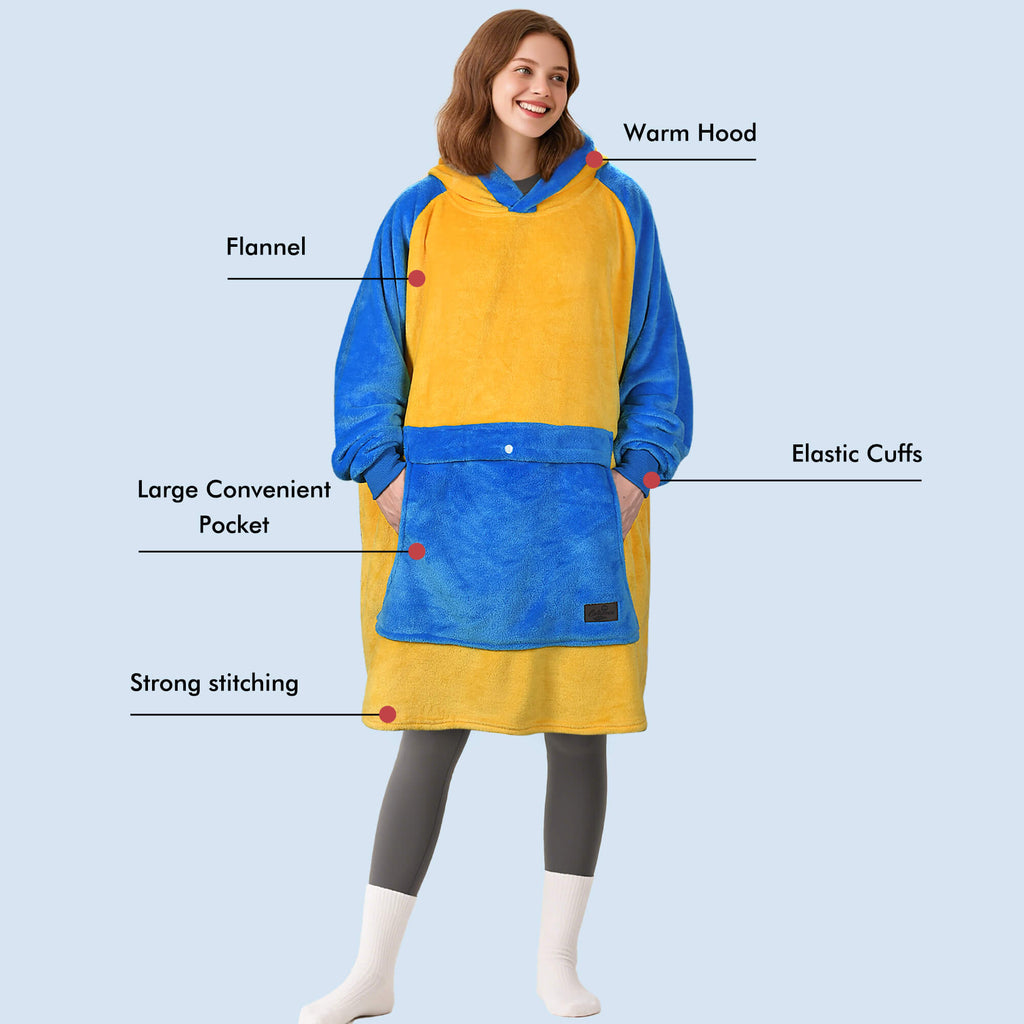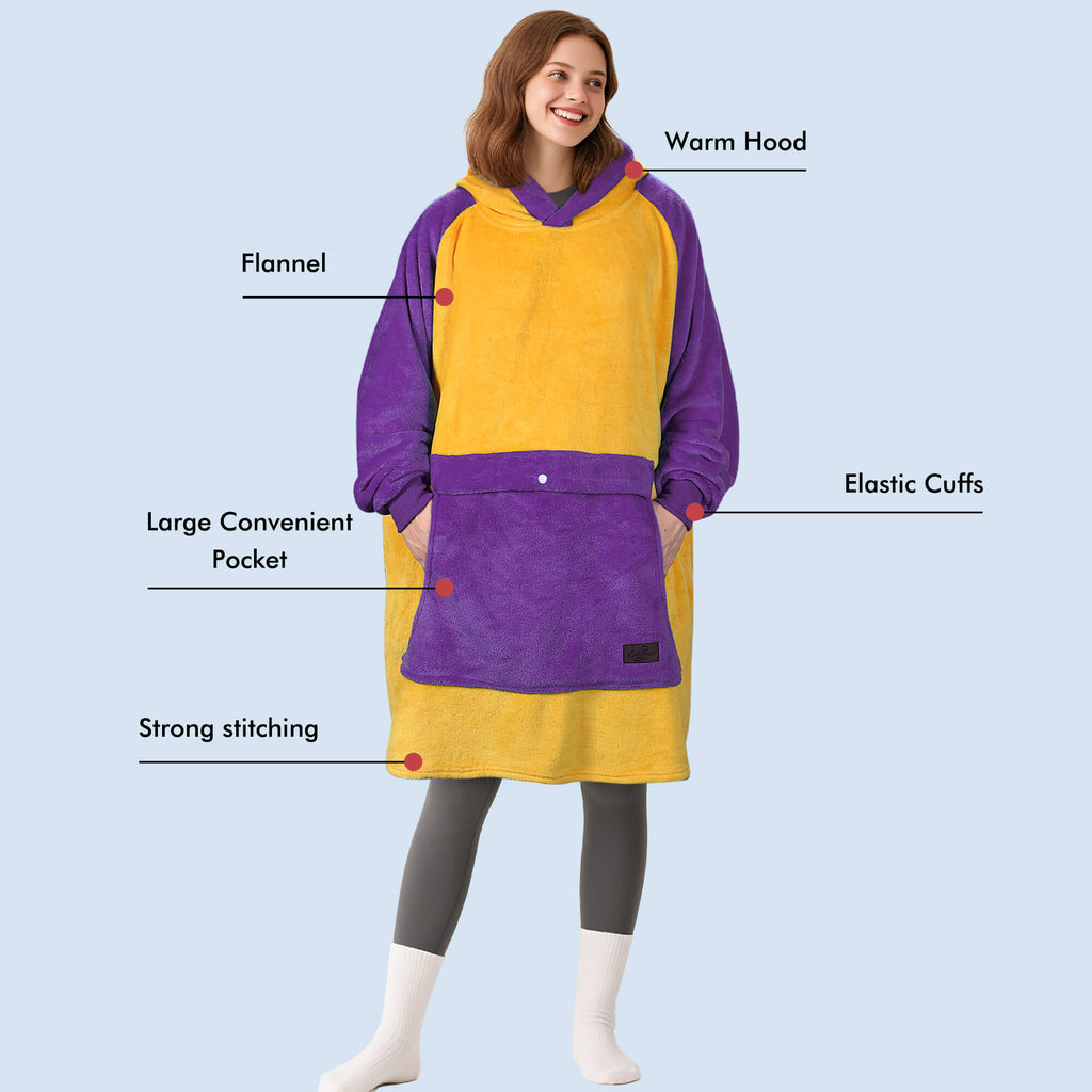 This blanket sweatshirt is not only suitable for adults, but also fit for kids. Kids alway wear it while walking in the beach, camping, watching football games, taking a nap.