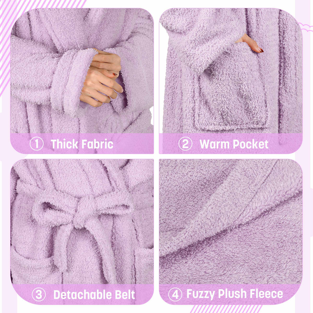 Indulge in Luxury with Premium Women's Plush Soft Robe - Fluffy, Warm, and Fleece Sherpa Shaggy for Ultimate Comfort, keep you warm and cozy while lounge around your house. Purple can make you more honorable and elegant. It can make your surroundings dreamy and romantic when you come out of the bathroom.