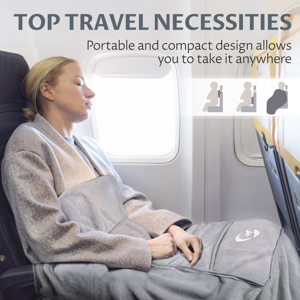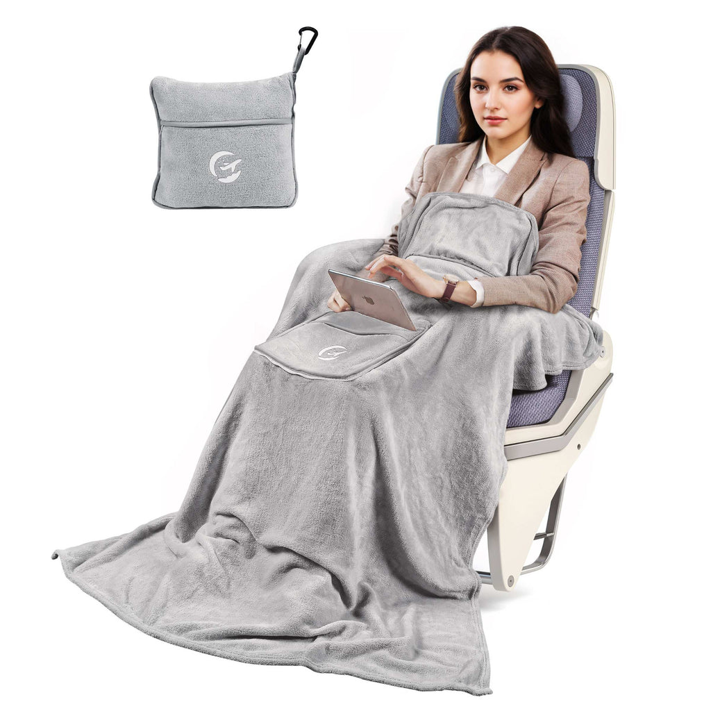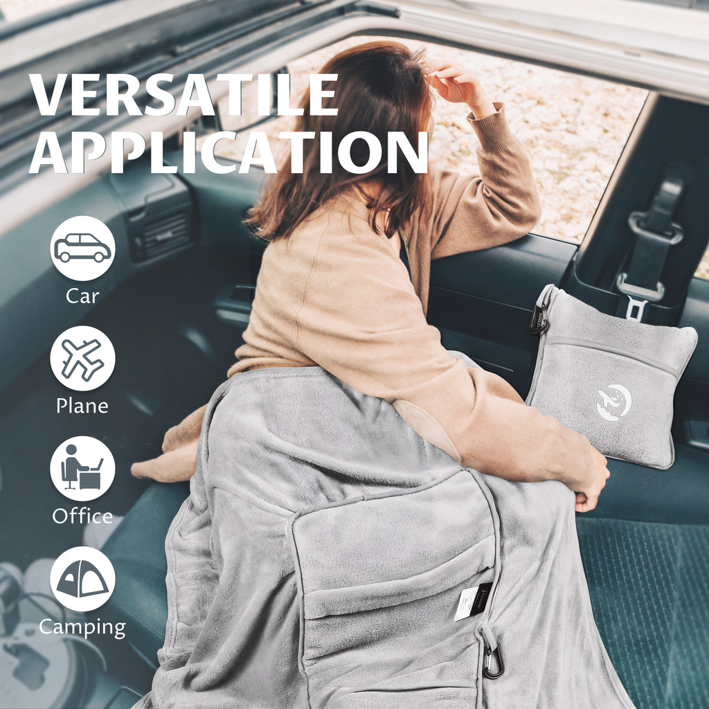 This isn’t just a blanket—it’s an all-in-one travel blanket pillow that adapts to your needs: